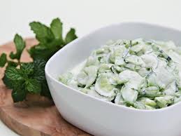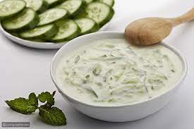 زبادي مخفف مع قطع الخيار الطازجة
